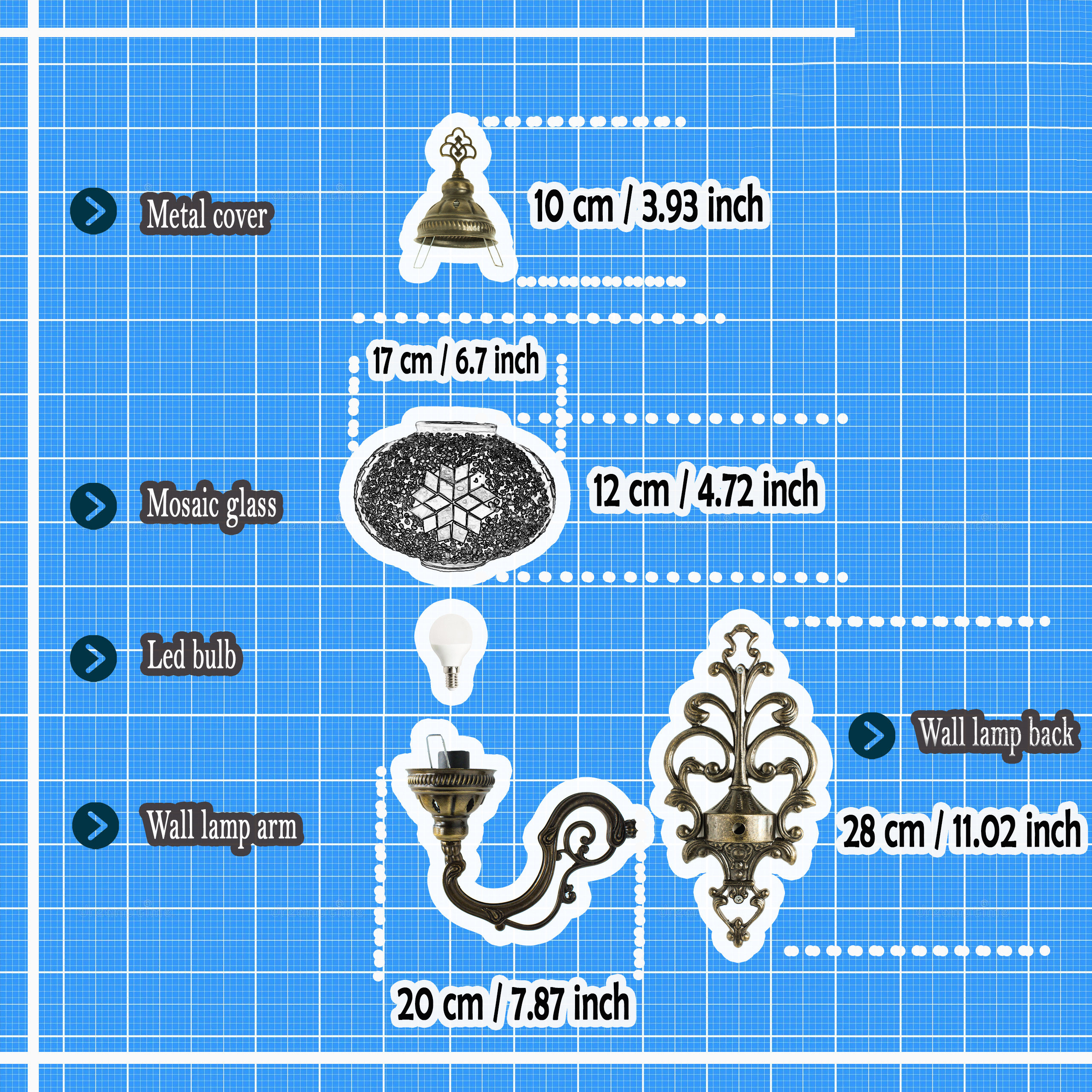 Turkish Moroccan Mosaic Wall Sconce Lamp with Bronze Base - D